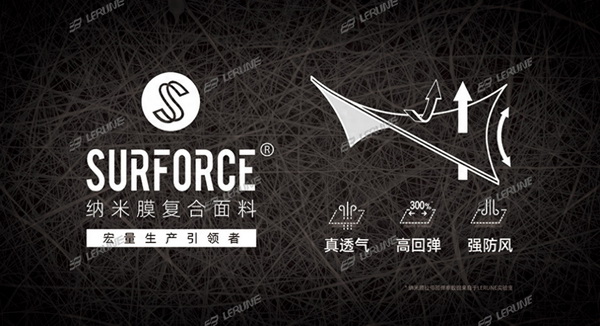 市面上常見的服用膜按照阻止液態水滲透和水蒸氣傳輸的機理,可分為微孔型薄膜、無孔型薄膜、雙組分型薄膜三種。目前市面上的無孔膜多為熱塑性聚氨酯(TPU)膜,納米纖維膜還有PTFE膜都屬于微孔膜范疇,而雙組分膜一般由純微孔型防水透濕薄膜和親水性無孔薄膜復合而成,是為了解決第一代PTFE層壓覆膜面料易滲水問題,但成膜后的透氣透濕性被削弱。從制備工藝上看,TPU膜是利用溶體通過流延膜和吹膜兩種不同的工藝達到設定的厚度,最后冷卻形成。PTFE膜是通過雙向拉伸膜是進行橫向/縱向的雙向拉伸,保持張緊狀態下進行適當熱定型或冷處理加工成膜。而Surforce納米纖維膜的成膜工藝區別于傳統的成膜工藝,是通過紡絲成型技術實現的。
