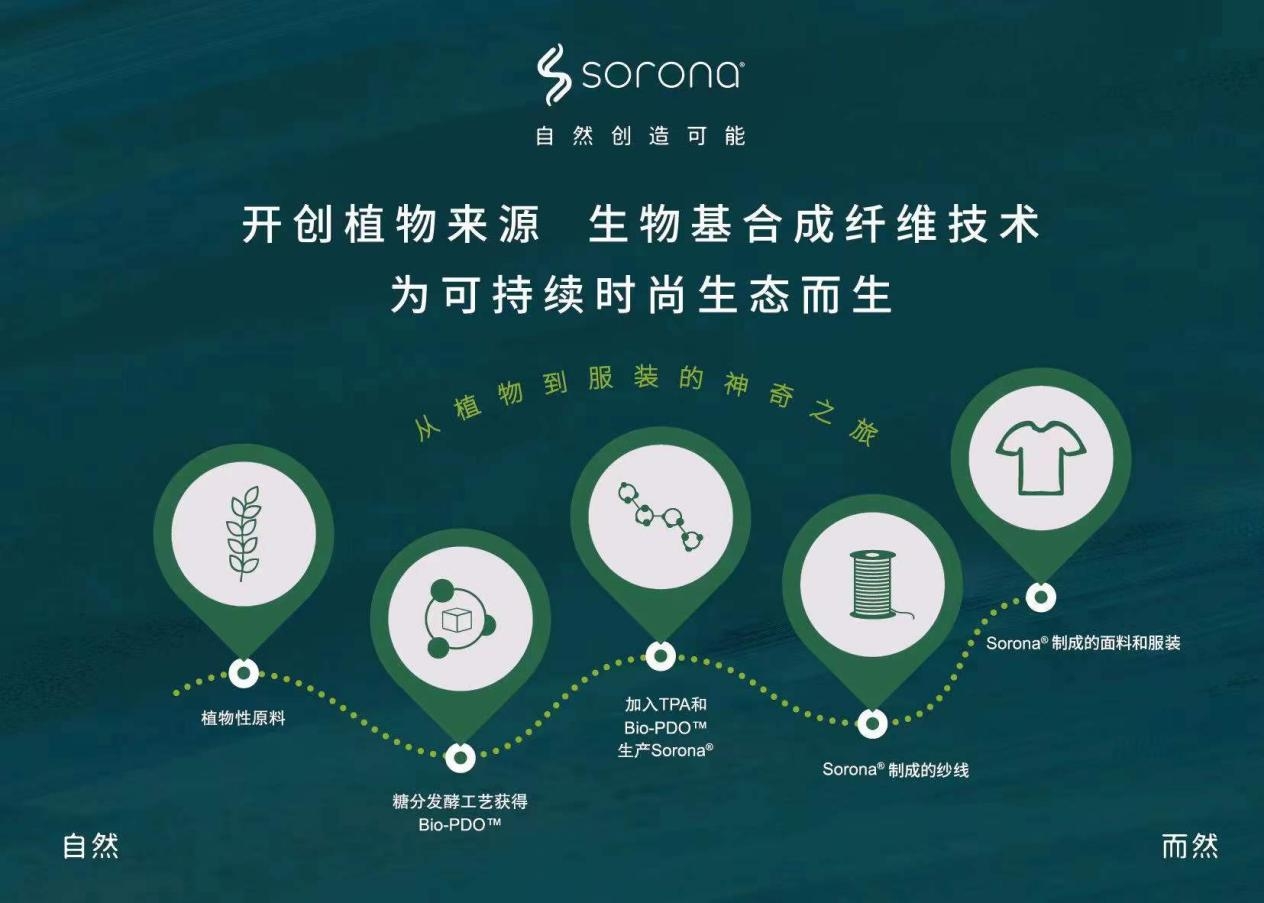 SORONA®是一項突破性的新型生物基聚合物解決方案,其核心原料來自每年可重復生長的植物。SORONA®不僅具有符合潮流趨勢的可持續發展和環保主題,而且可以為纖維帶來多種功能的優良特性。用SORONA®原料制成的纖維的“多功能性”為面料和服裝設計師提供了更大范圍的設計自由!