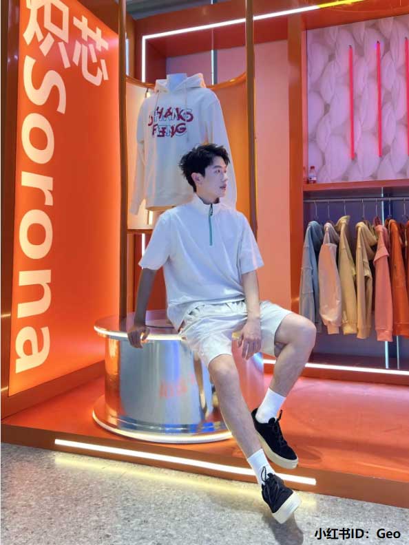 菌絲、苔蘚、綠色植物與科技明亮色系的交映融合,形成自然炫酷的獨特風格氣質,吸引眾多KOL打卡拍照,在社交平臺等潮流聚集地分享各自的潮流態(tài)度。