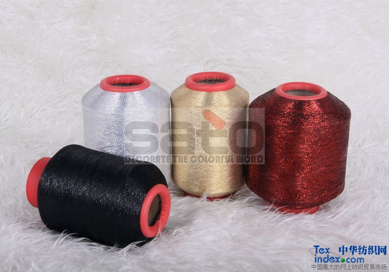 MH型 產品是由分切好的鍍鋁金銀絲片與滌綸、錦綸、人造絲或者其他紗線合捻而成。