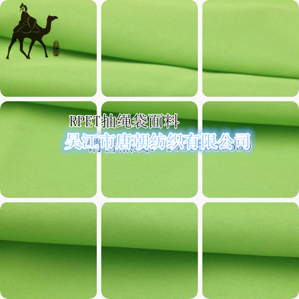 子和可樂瓶中提取制成的,又俗稱為可樂瓶環保布(RPET fabric)。此產品因其是廢物再利用 ,所以在國外尤其是歐美發達國家很受青睞,廣泛用在登山包、挎包、箱包里料、書包、箱包、服裝,公文包,時尚包,儲物箱里料、束口袋、禮品袋,手提袋、購物袋等等。可樂瓶”回收再生短纖可以加捻紡成紗,然后織成面料,制造成各種其它產品。