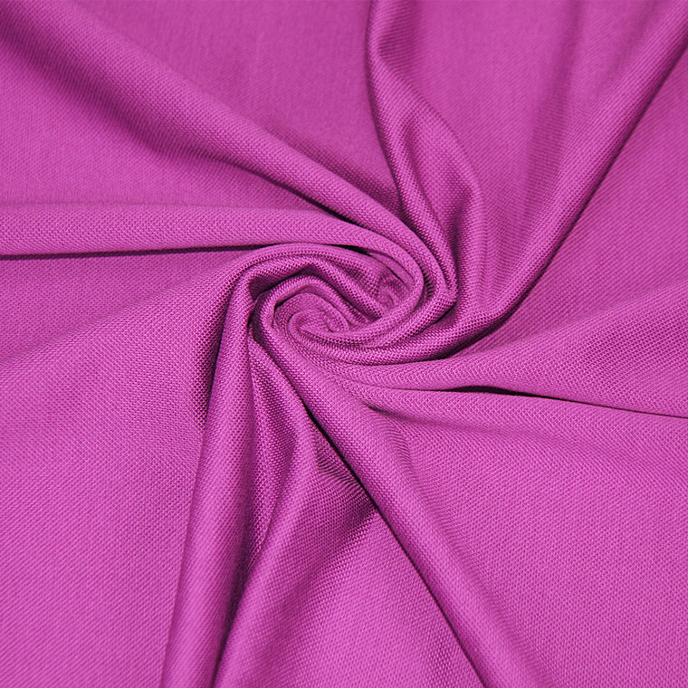 3. 絲光棉珠地面料的特點:(1)、面料色澤明亮,久洗不變色;(2)、面料具有絲綢面料一般的光澤;(3)、面料尺寸比較穩定,垂懸感較好;(4)、面料挺括、抗皺性能好、由于經過兩次燒毛絲光處理,雙絲光棉布在多次洗滌后不會起毛。(5)、采用耐后絲光染料,色牢度高,不會沾色掉色(6)、成份是100%棉,保證了面料的吸汗效果,穿在身上透氣性好。(7)、珠地網眼的織造方法,面料的透氣效果更好,吸濕排汗功能更強大!
