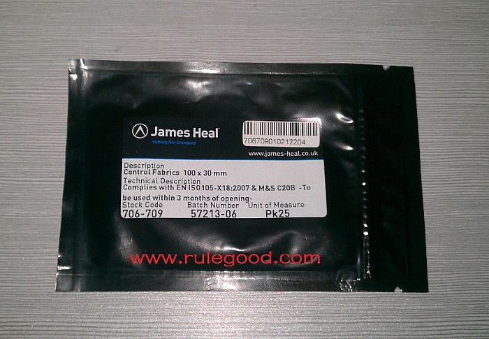 JAMES HEAL酚醛黃變控制布與酚醛黃變測試紙一起并用測試。