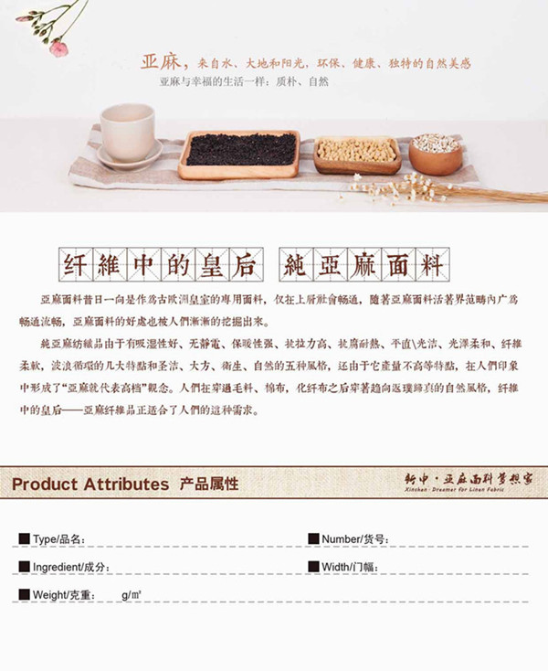 所屬分類(lèi) 面料,麻面料