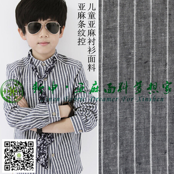 兒童襯衫 亞麻豎條紋領帶襯衫高檔面料