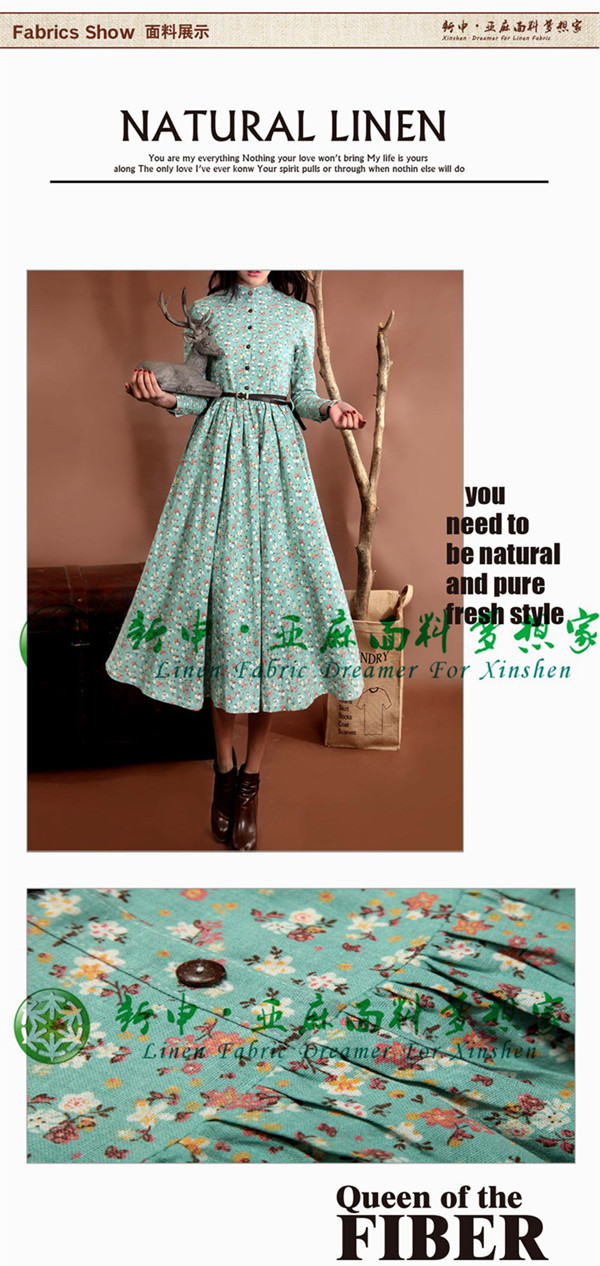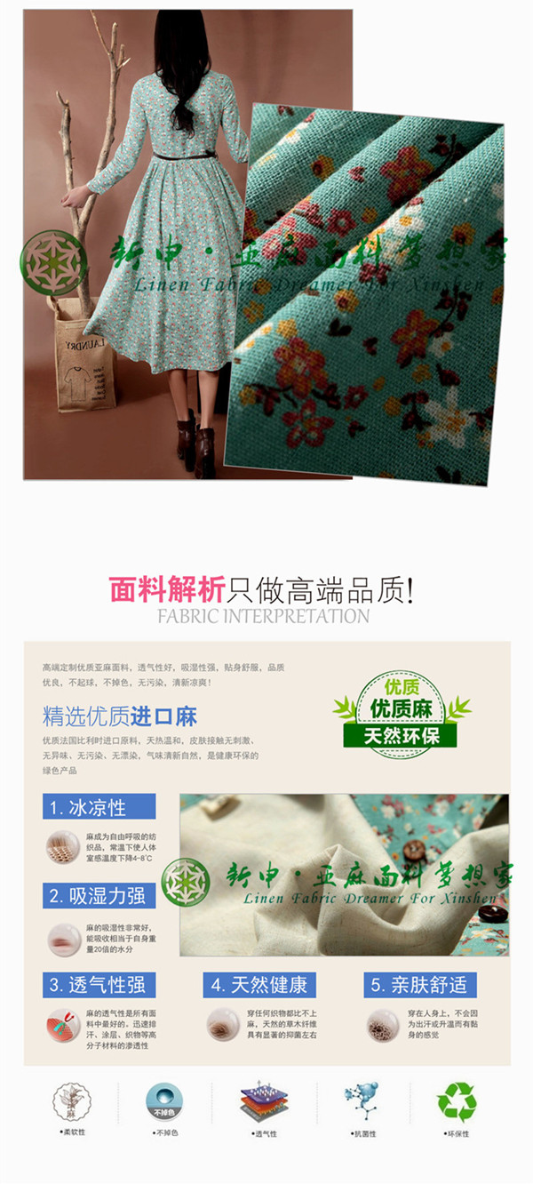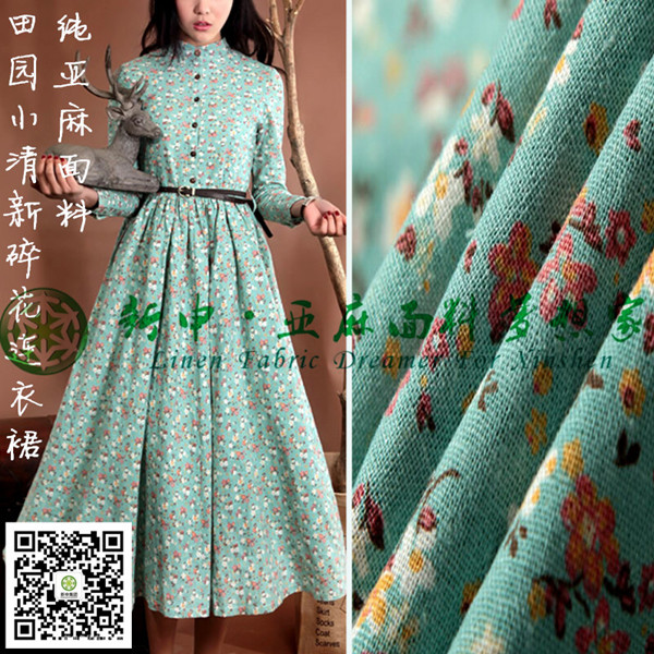 田園小清新碎花亞麻連衣裙面料清新亞麻面料