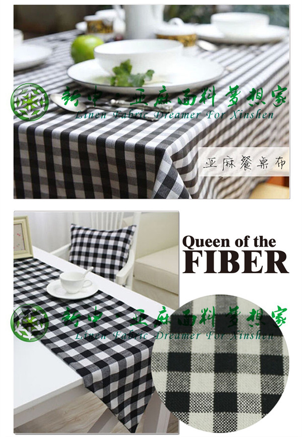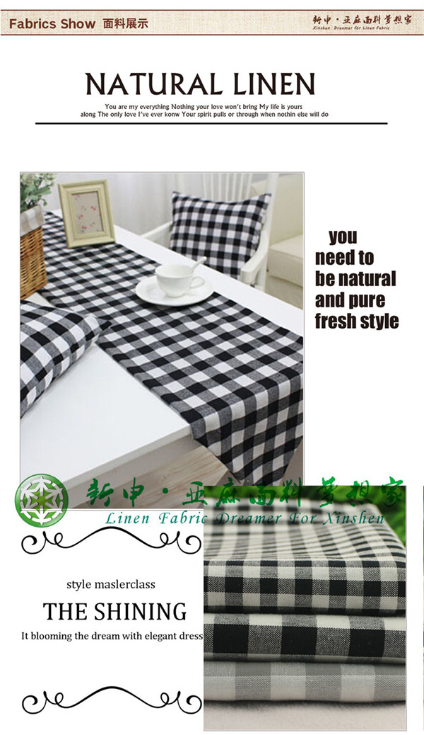 亞麻棉黑白格子色織餐桌布面料爆款亞麻面料