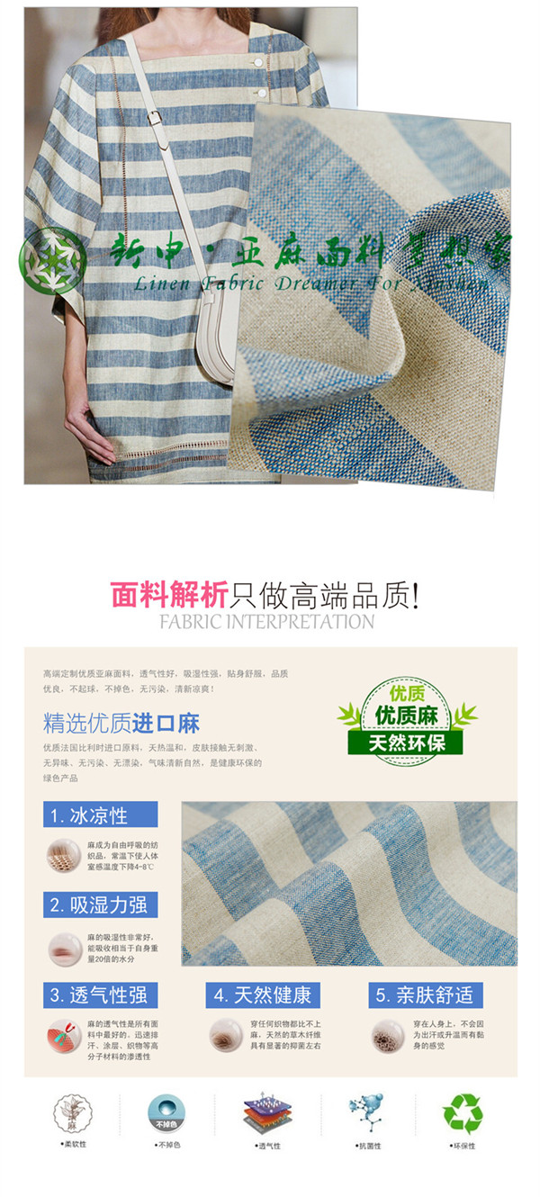 關鍵字:亞麻面料,色織時尚,經典條紋,舒適抑菌,大牌風尚