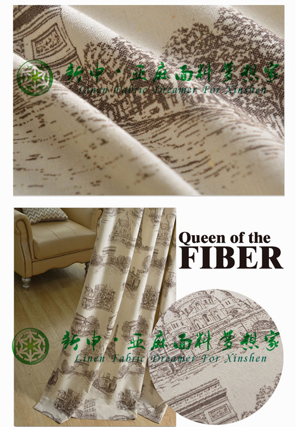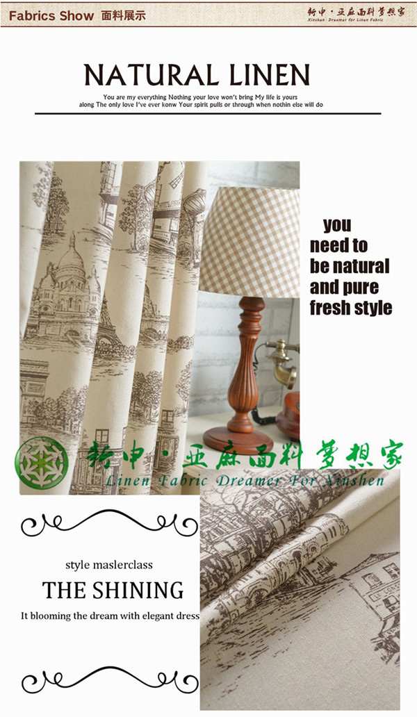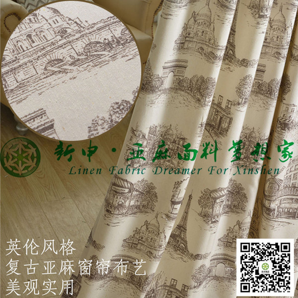 田園建筑巴黎鐵塔復古素描亞麻布藝窗簾面料