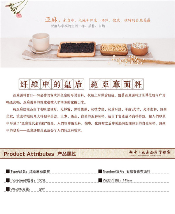 高檔純亞麻石墨布餐桌、茶幾布布藝面料