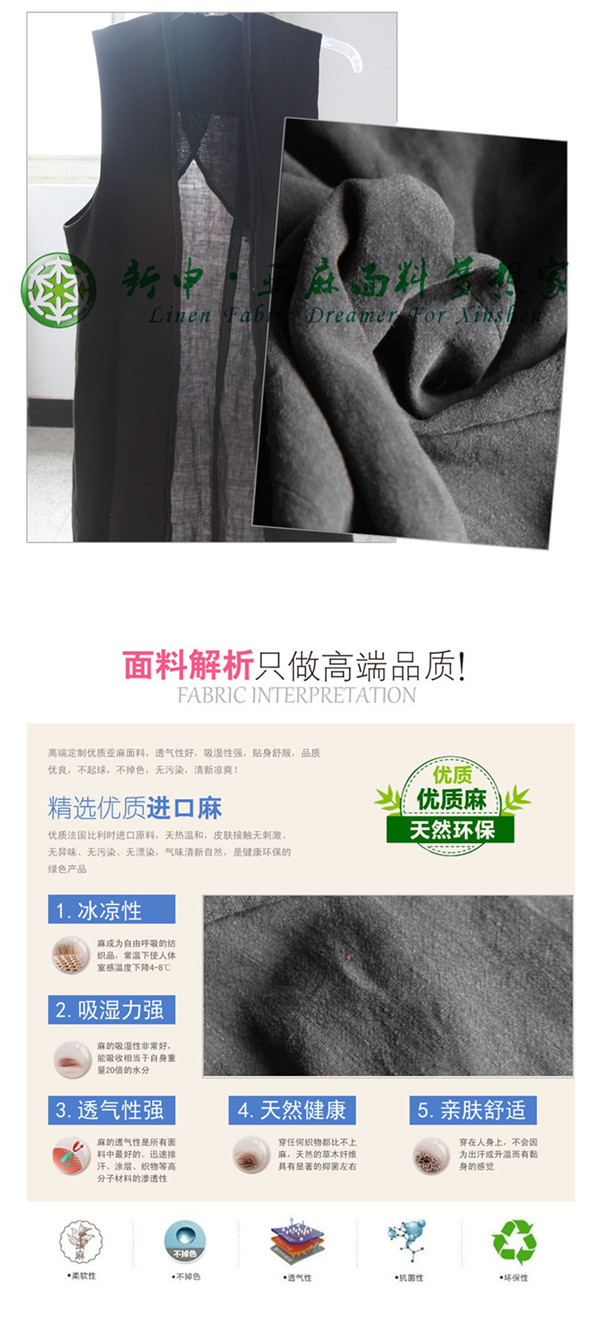 關鍵字:亞麻面料,寬松休閑,簡約大方,款式新穎,自然健康