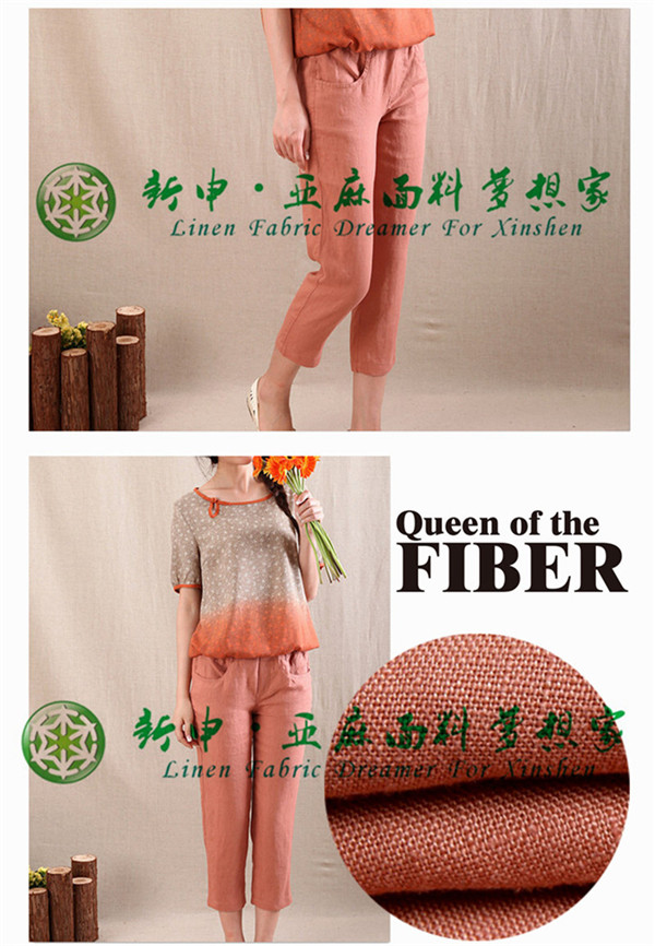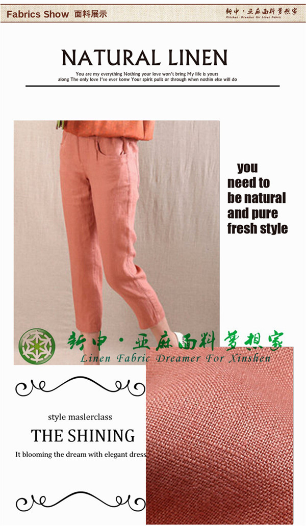 100%天然亞麻寬松休閑9分褲布藝面料