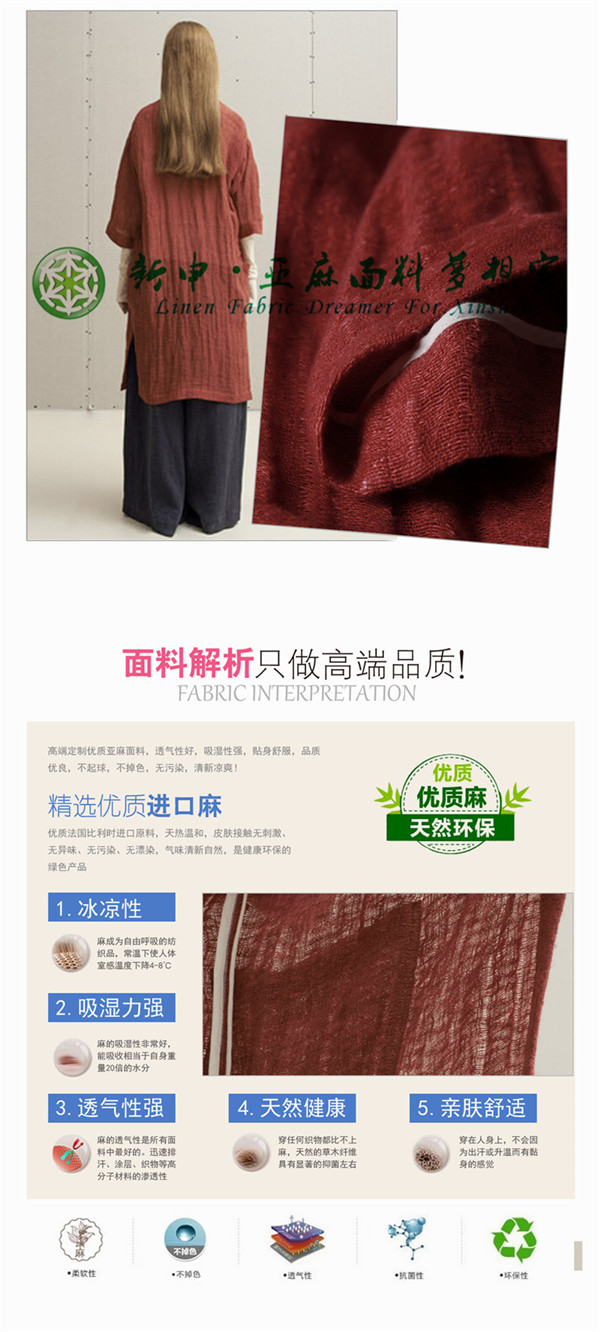 關鍵字:亞麻面料,輕薄簡約,時尚潮流,款式新穎,質感舒適