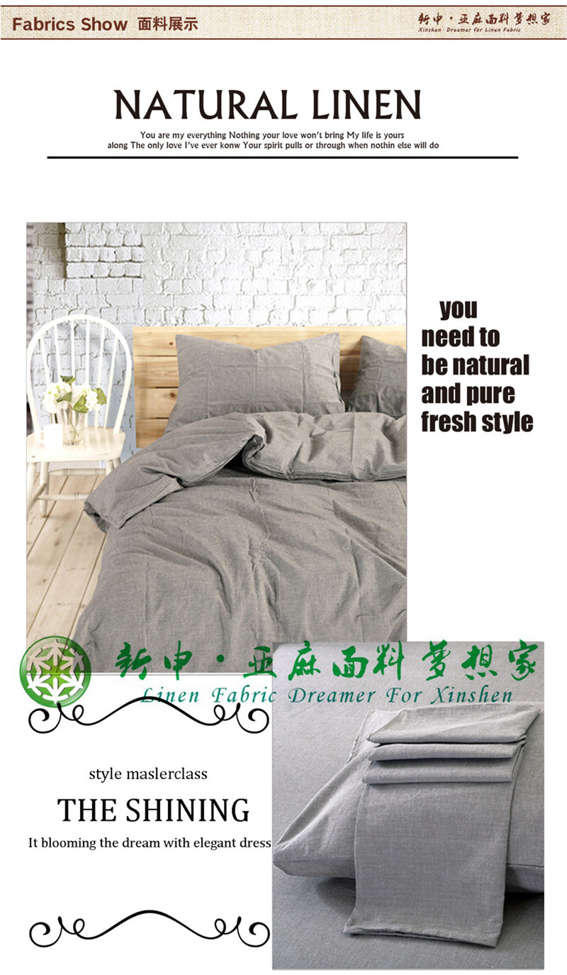 舒適透氣亞麻純色床上用品四件套面料