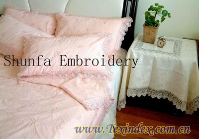 床上用品:包括被罩、床單、枕袋、床裙、抱枕、靠墊、餐巾盒套等。