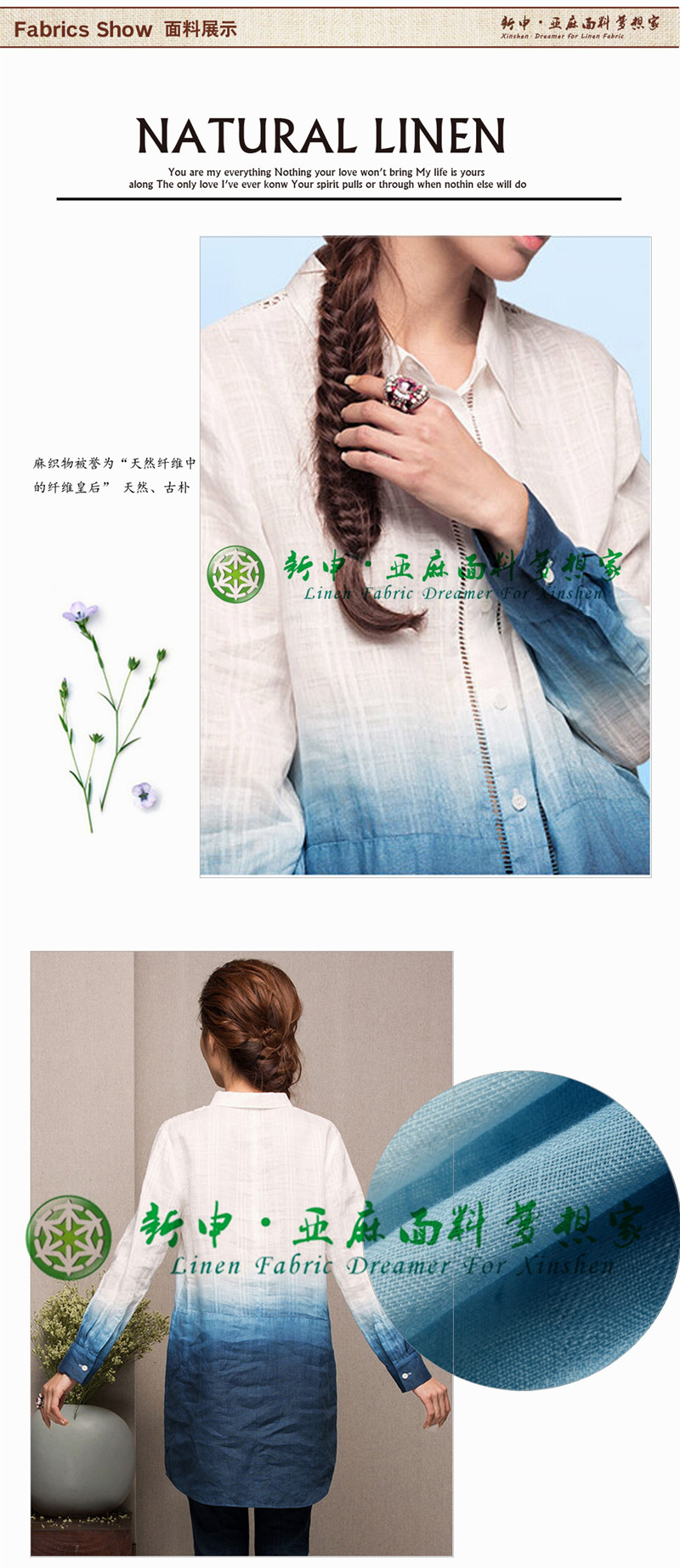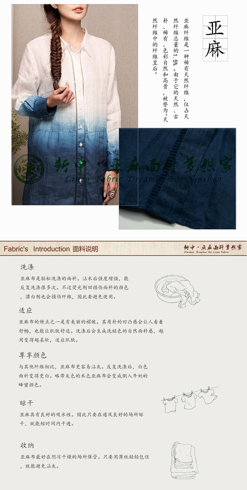 關鍵字:亞麻面料,優質舒適,自然親膚,簡約時尚,氣質大方