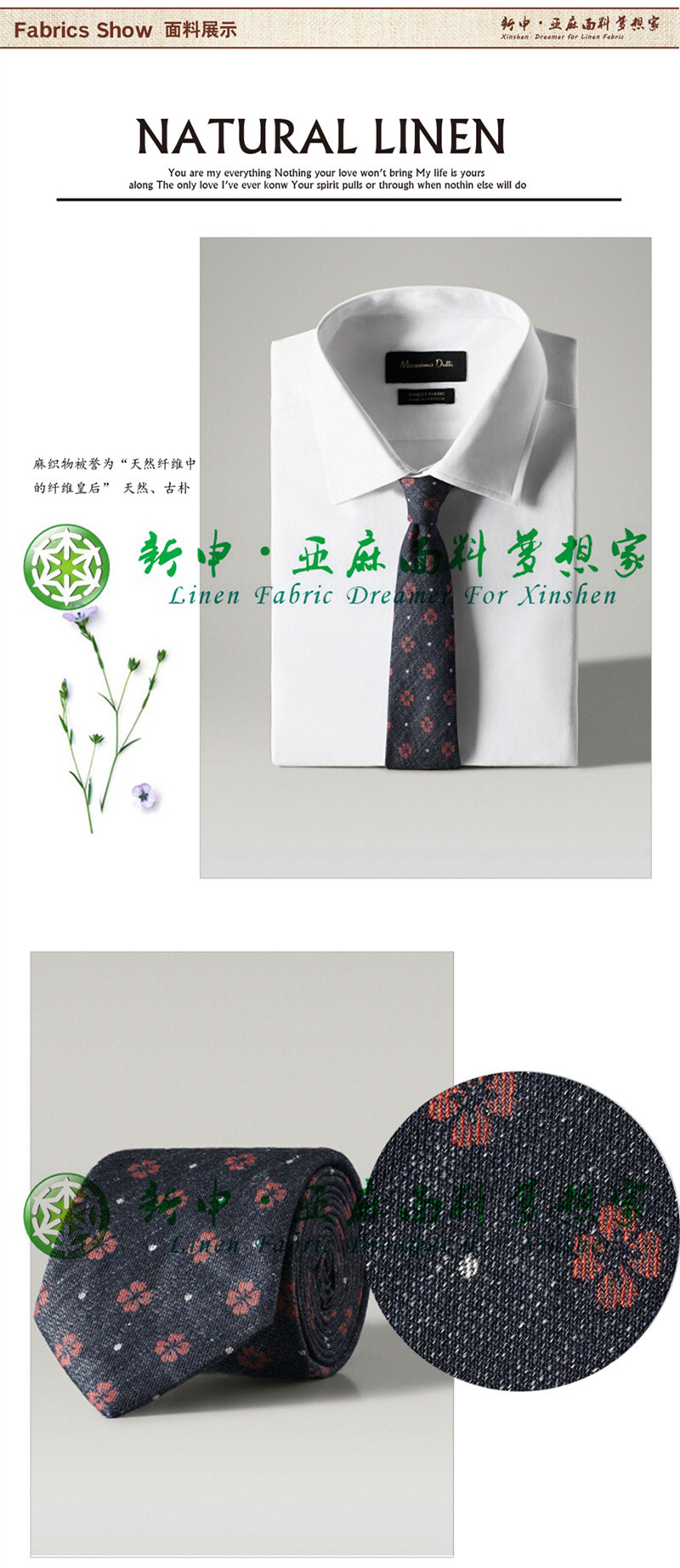 男款時尚紳士風(fēng)格亞麻棉印花領(lǐng)帶布藝面料