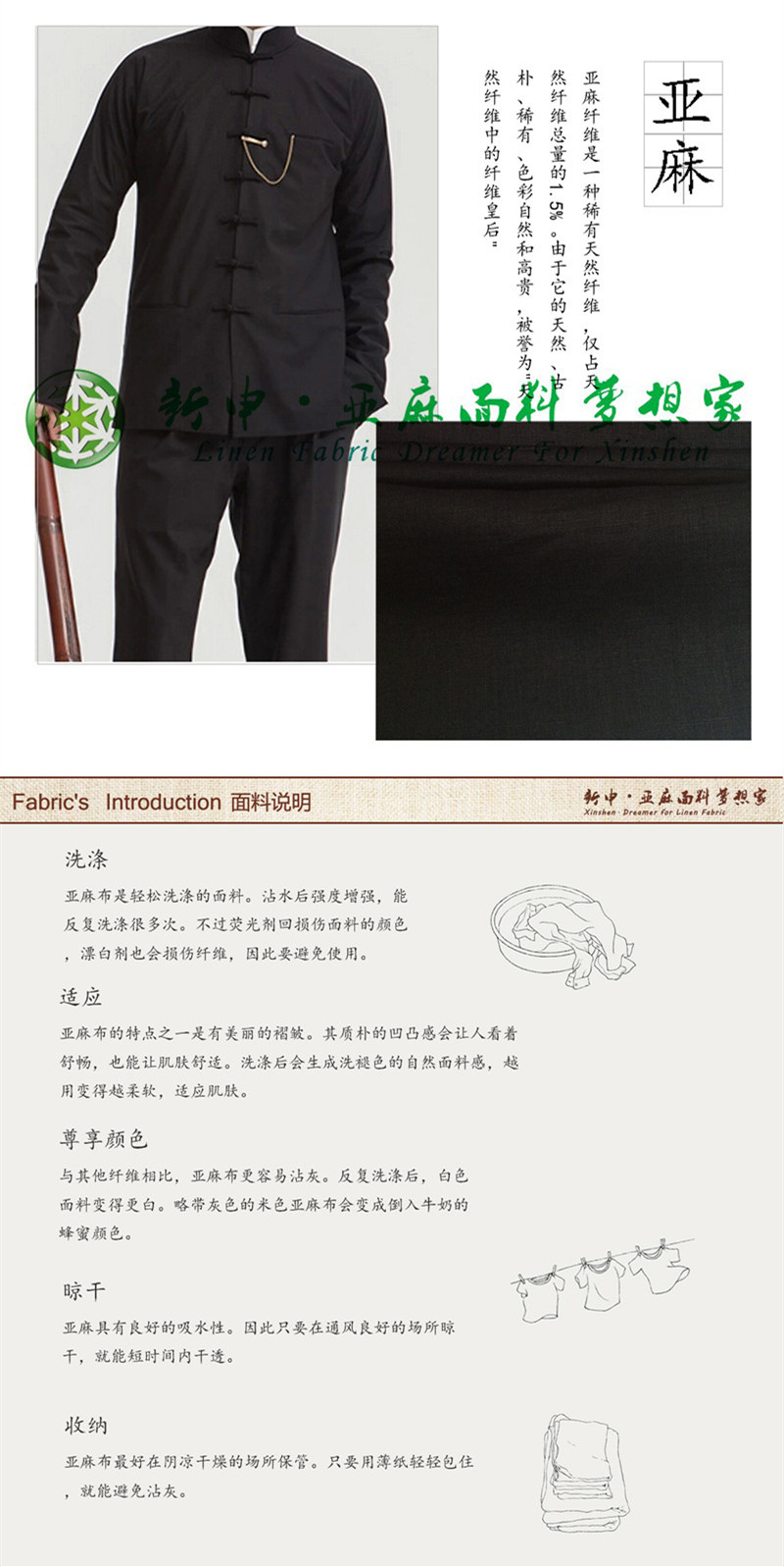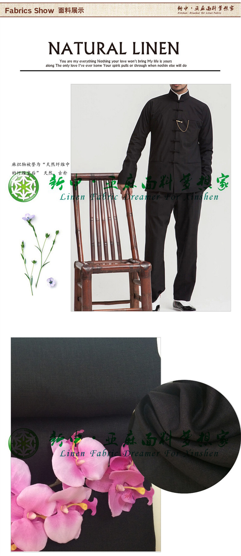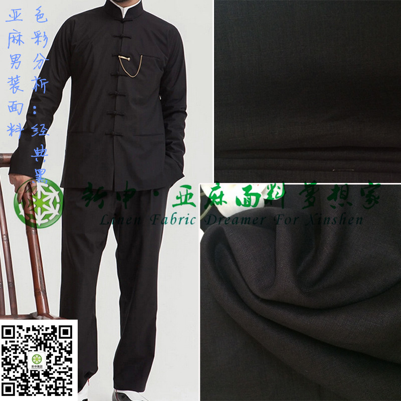 2015新款亞麻經典黑男士新中裝布藝面料