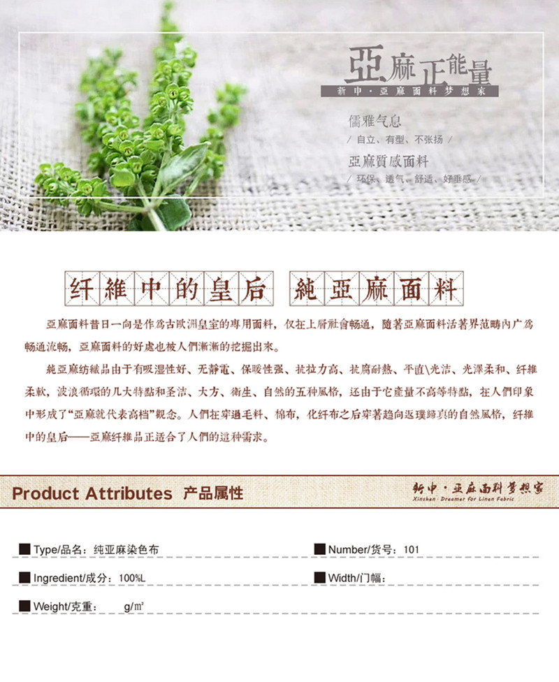 所屬分類 面料,麻面料