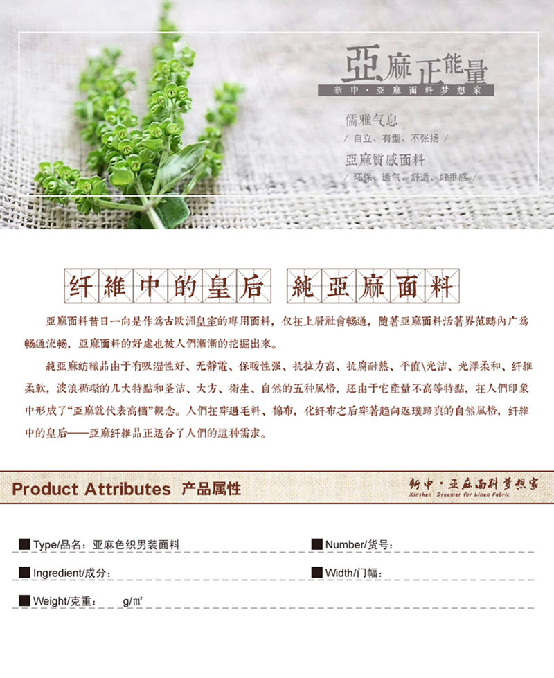 所屬分類(lèi) 面料,麻面料