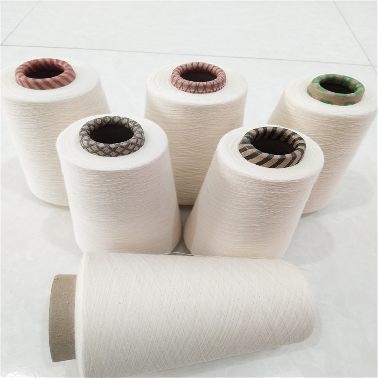 5.人棉混紡系列: .緊密賽絡紡人棉紗32支40支50支60支;環錠紡粘65/棉35配比紗21支30支32支40支, 粘50/棉50配比21支32支40支,棉60/粘40配比21支32支40支。F特紡系列:純棉反捻紗強捻紗10支-45支,滌棉AB紗21支32支;,腈綸粘膠混紡紗32支.40支,竹纖維紗線,賽絡紡精梳紗棉50/粘50配比32支40支等, 緊密賽絡紡棉60/粘40配比32支40支50支。