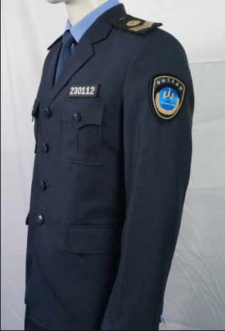 國領標志服裝廠供應衛生監督服裝標志 (一)帽徽:由國徽和橄欖欖枝組成圖案,鋁質,金黃色色. (二)胸牌號:鋅鋁鋁合金材料工藝合成,白色66位阿拉伯數字,黑色支架,,背面兩孔距離位編碼的1--2位為省級區劃代碼,4--6位為衛生監督員編碼. (三)肩章:高分子PUU材料特種工藝制成,黑色底底,金色圖案由衛生監督圓形形徽和五條由寬到窄的折線組組成. 硬肩章:153cmm×50cm,制服佩帶. 軟肩章:143cm×500cm,半袖襯衫,外穿長袖袖襯衫佩帶. 套式肩章:1133cm×50cm,大衣衣佩帶. (四)臂章:盾盾牌外型,圖案由中國衛生監監督中英文及衛生監督徽組合合而成,面料及工藝同肩章..