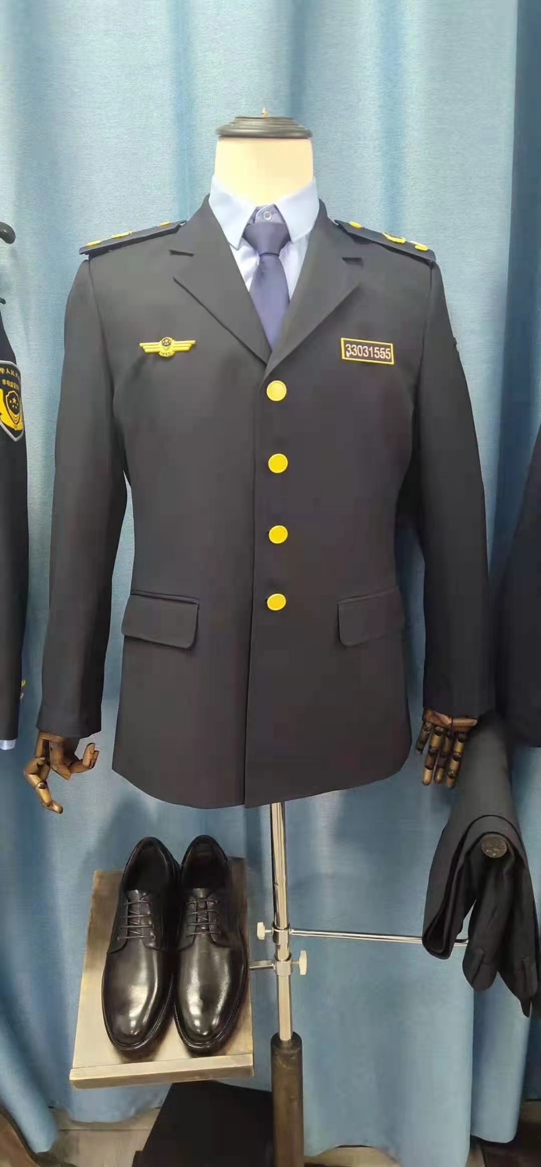 執勤服:藏青色(精梳滌棉斜紋布),應符合標樣。
