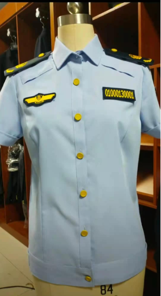 服裝的顏色為藏青色及天空藍色,搭配金色標志。服裝功能主要考慮適應城市管理工作場所多在戶外、街頭的實際,便于執勤活動