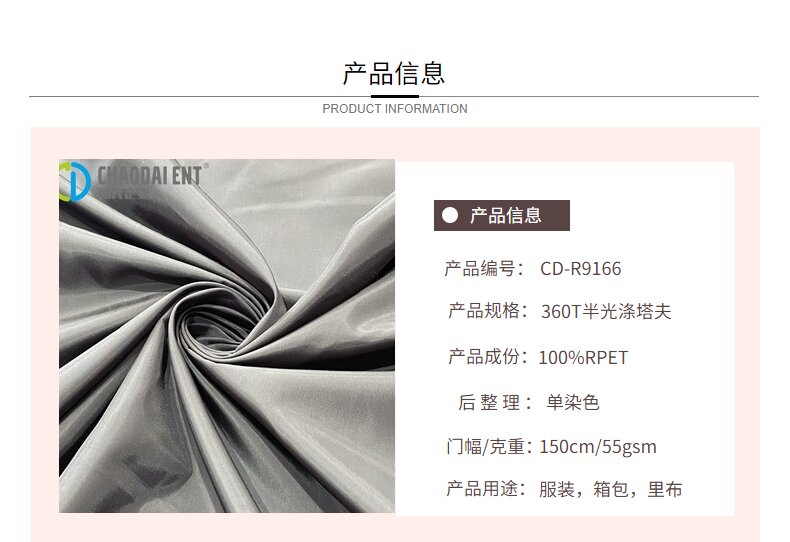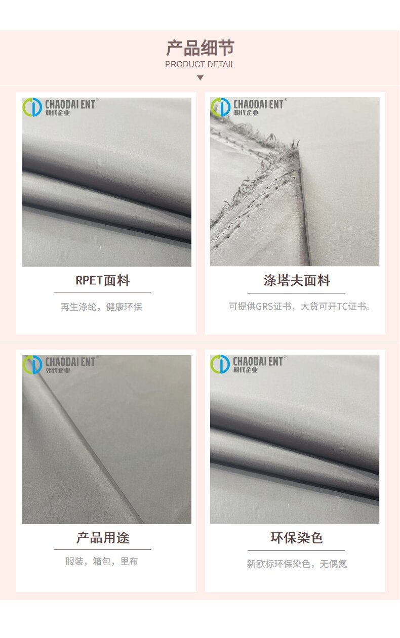 關鍵字:再生面料,滌塔夫面料,箱包面料,服裝面料