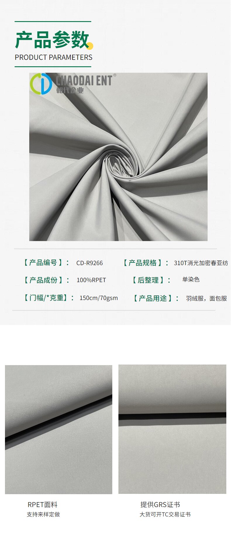 關(guān)鍵字:再生春亞紡面料,消光加密春亞紡面料,面包服面料,羽絨服面料