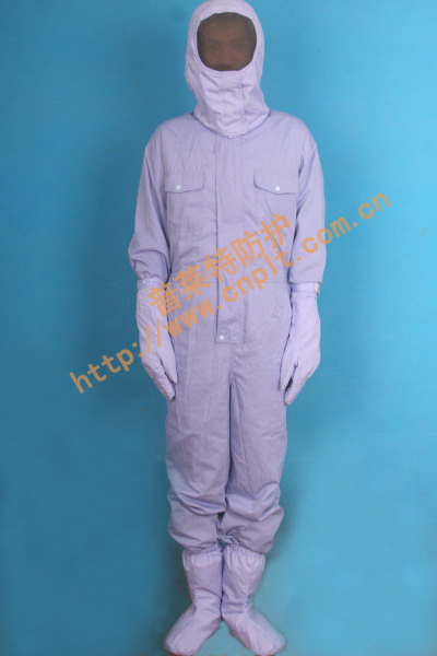 注:本款式為全封閉連體防護服、帶面罩(透明不影響呼吸)、手套、腳套,防護效果極佳,相當于一個軟體屏蔽室,是強輻射環境下工作人員防電磁輻射、微波輻射、激光輻射、射頻輻射等的最佳防護服裝。
