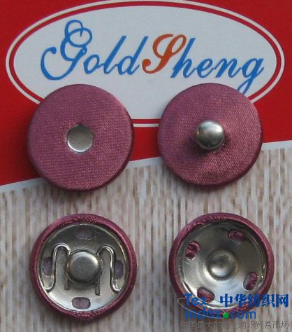 金圣鵬 布包按扣 (布包按扣,包布啪鈕,包布暗扣,包布撳鈕,包布撳扣,布包啪鈕,布包啪紐,布包啪扣),國產(chǎn)規(guī)格有四孔和六孔可供選擇,10MM、12MM、14MM、15MM、17MM、19MM、21MM、23MM、25MM、27MM、30MM、32MM,產(chǎn)品選用表面覆蓋織物、鋁、H65銅按扣組合,表面覆蓋織物可采用各種服裝面料、真皮或用仿皮革加工。