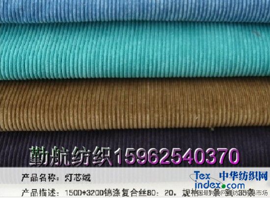 勤航紡織原裕發紡織是一家暨產品的開發、生產、銷售為一體的現代化企業公司,公司主要生產的產品是:錦滌雙面絨 ,“麂皮絨”、錦滌割絨(燈心絨)系列坯布,成品及后整理等加工面料,同屬化纖磨毛類的韓國彈力絨。臺灣MO'S等茄克運動服、鞋面、沙發套、手提包等面料;棉類:純棉、滌棉、T/R等休閑、茄克、羽絨服西褲等面料。