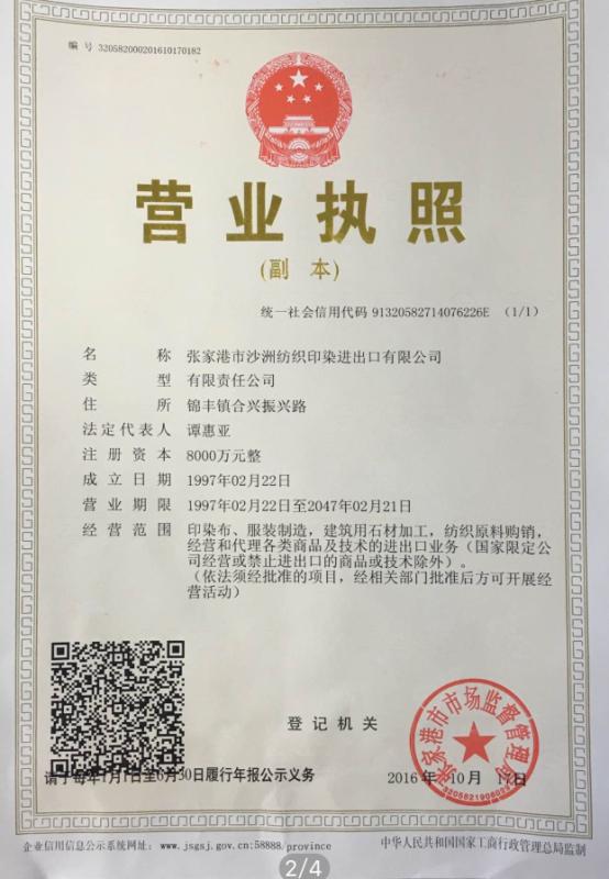 張家港市沙洲印染進出口有限公司
