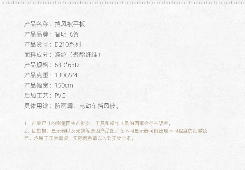 產品關鍵字:滌塔夫涂皮,pvc,擋風被平板面料,防雨綢,