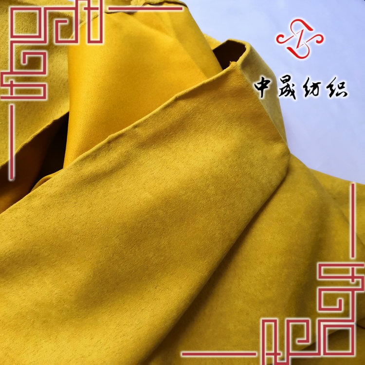 緯向麂皮絨 經線一般采用75D/72f低彈滌綸絲或網絡滌綸絲,緯線采用105D/36f×37海島型復合滌綸絲。