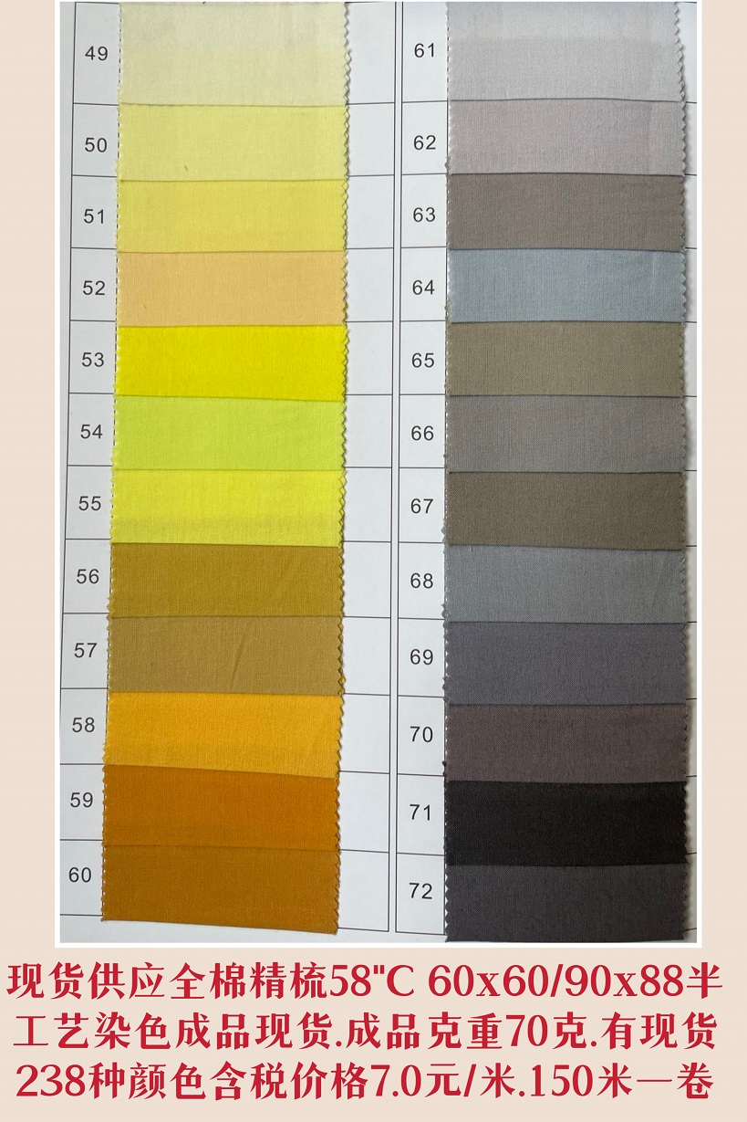 倉庫常年現貨供應60"JC60x60/90x88染色成品布有238種顏色細布,