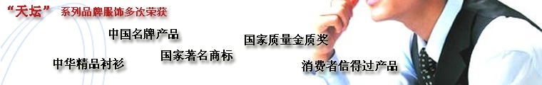 公司以“質(zhì)量是企業(yè)的命脈,用戶是企業(yè)的根基”為經(jīng)營(yíng)理念,以“科技領(lǐng)先,質(zhì)量一流,精益求精,鍛造名牌”為質(zhì)量方針,通過(guò)了ISO9002國(guó)際質(zhì)量體系認(rèn)證。“天壇”牌襯衫連續(xù)多年在省級(jí)以上技術(shù)質(zhì)量監(jiān)督檢查中,均被評(píng)定為優(yōu)等品,出口商品檢驗(yàn)批次合格率100%。2001年通過(guò)了中國(guó)質(zhì)量監(jiān)督檢驗(yàn)檢疫局的出口產(chǎn)品免驗(yàn)評(píng)定。