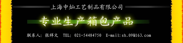 上海中燦工藝制品有限公司是自上世紀九十年代末成立至今,以箱包、手袋的設計、開發、生產、銷售一條龍服務,同全球廣泛的客商建立了良好的商務關系。我司主要產品有時尚包、箱包、公文包、休閑包、旅行包、樂器包、工具包、手袋等系列,可來樣、來圖、OEM、ODM生產加工。