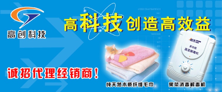 本公司產品具有極大的市場發展空間,特別是公司的主打產品,純天然植物纖維毛巾--竹木纖維毛巾,可以說帶來了一場毛巾的“革命”您只要擁有北京高創家居系列產品的經銷權,即可實現財富的輝煌!在此我們真誠希望與各界具有實力及遠大市場目光的客戶朋友合作共創我們的美好未來。