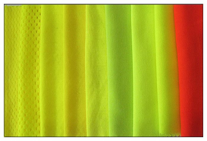 性能:滌棉交織布規格齊全,包括斜紋、緞紋和平紋,克重從130g/m2到310g/m2,共有超過20個品種。顏色包括熒光黃、熒光橙、熒光綠、熒光紅、熒光粉紅、熒光桃紅、熒光藍(通過EN471、GORT-3279、ANSI/ISEA 107標準)。永久性防靜電(通過EN-1149標準),防水、防油、防污(通過EN343標準,配Teflon吊牌)。另外,該熒光橙和熒光紅面料可以永久性阻燃(通過EN11612、EN11611標準),為我司最新產品。