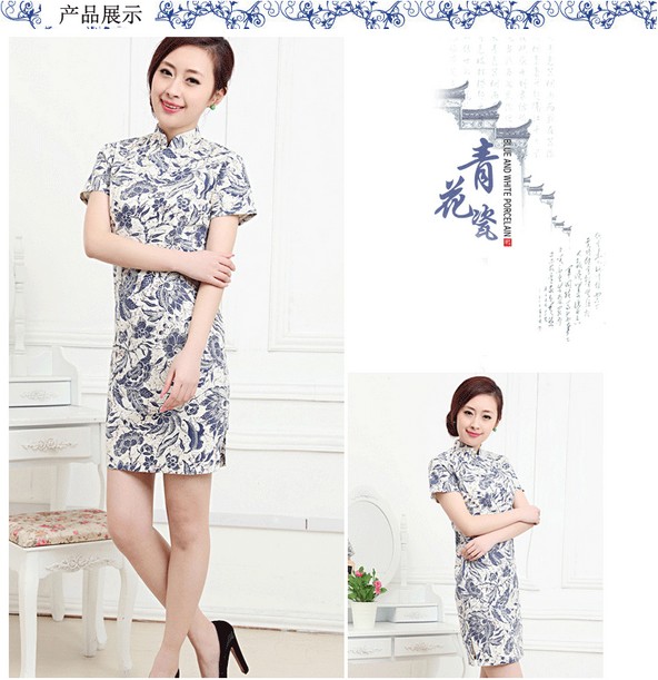 古典高雅青花瓷印花設計工藝,讓旗袍更加具有古典精致,高貴而典雅。