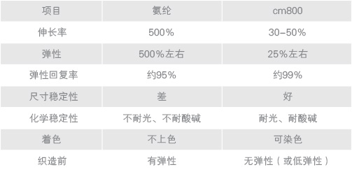 CM800是聚酯系列,成分為PTT/PET的雙組份產品,由于PET與PTT二者熱收縮率不一樣,因此在熱作用下,纖維就發生了如下圖的變化,從而有了彈性,該彈性在非溫度破壞下,基本不會失彈。它是一定彈性織物中,良好的氨綸升級品。