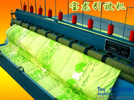 寶龍引被機(jī):新一代全自動引被機(jī),不留被頭,一人操作,方便易懂。是我廠開發(fā)研制的第四代產(chǎn)品,關(guān)鍵部分精心設(shè)計(jì),兩分鐘可引一床被,線條筆直好看,針距均勻大小可調(diào)。有九針,七針兩種機(jī)型,長度不限,是取代傳統(tǒng)跪爬式一針一線引被的高科技產(chǎn)品,所用動力為1.5KW兩項(xiàng)電機(jī),設(shè)計(jì)合理,安全可靠,整體美觀大方,本機(jī)長2.6米,寬1.2米,高1.3米,也可以根據(jù)顧客的要求訂做。價(jià)格低廉,回本快,是老百姓都能接受的價(jià)格,是彈棉花用戶家庭致富的首選產(chǎn)品。
